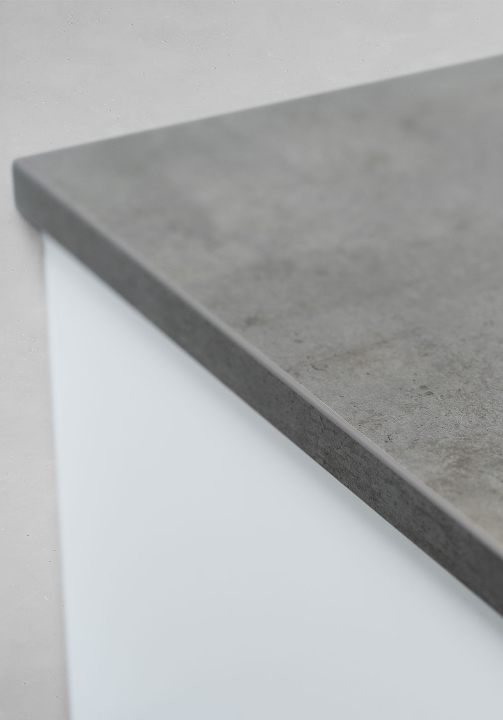 Bordplade af melaminbelagt MDF med rustik cementlook Boring af huller udføres af installatøren alt efter blandingsbatteri og fritstående håndvask samt valg af placering.