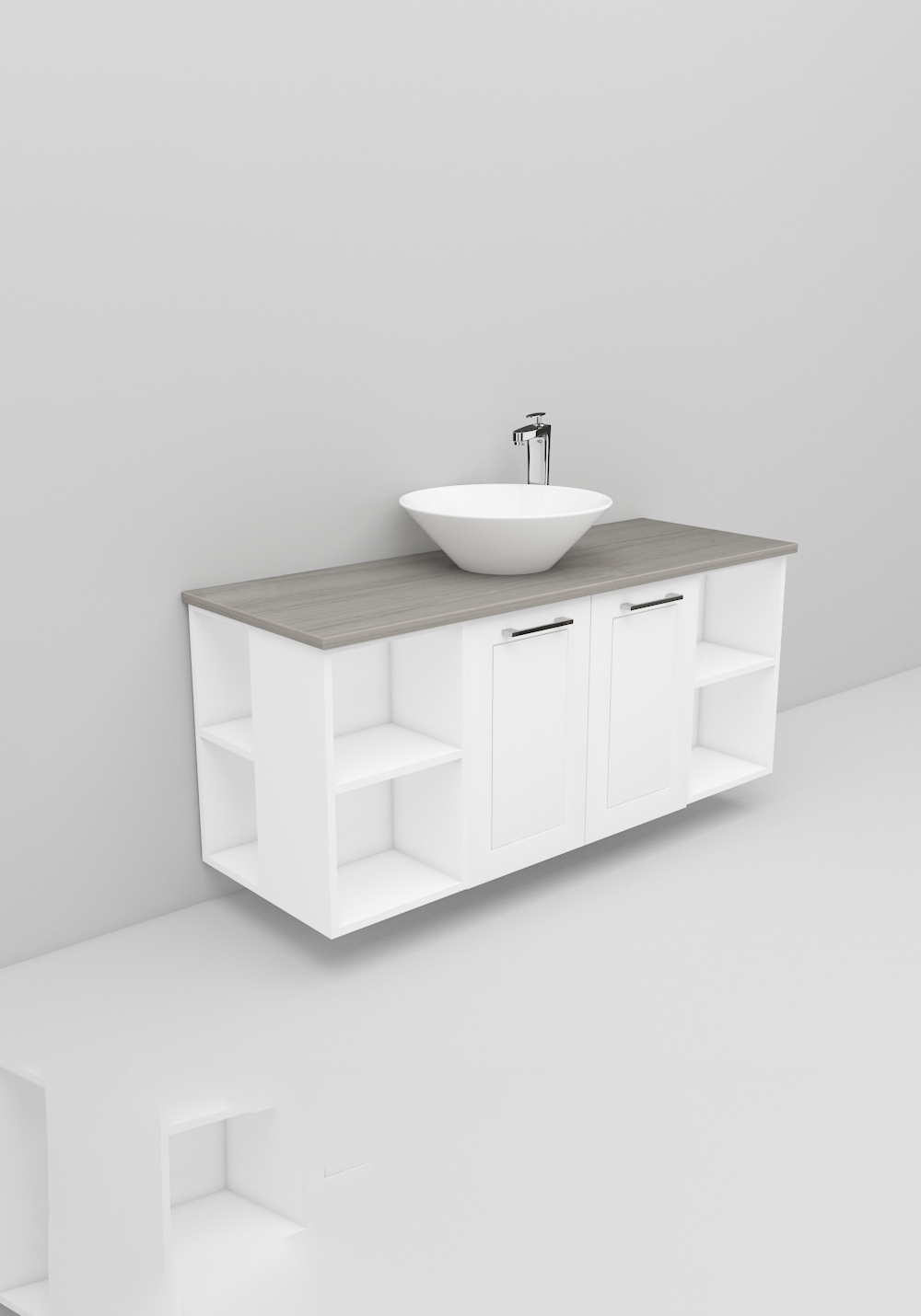 Flexline er badeværelsesmøbler med et tidløst design og mange muligheder. Møblerne fås i varianter med både låger og skuffer med Soft Close-funktion, i bredder på 600 og 1200 mm og med flere forskellige designs på fronterne, som giver karakter til dit møbel. Inkluderer en luksuriøs fritstående vask på en bordplade i Solid Surface-marmor eller sort bordplade. Håndtag, armatur, bundventil og vandlås købes separat.