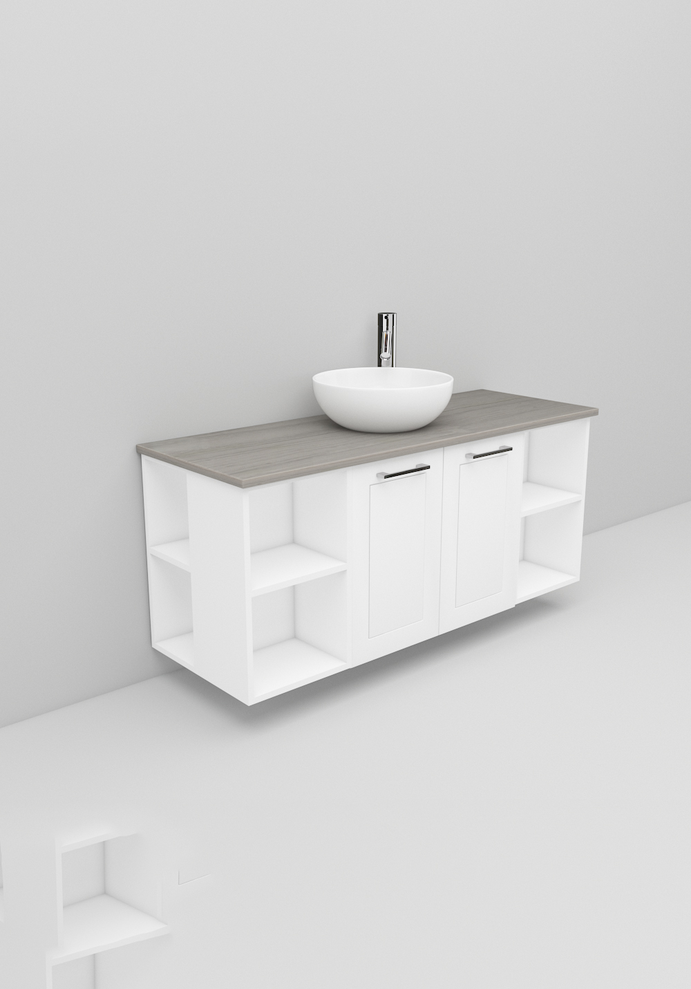 Flexline er badeværelsesmøbler med et tidløst design og mange muligheder. Møblerne fås i varianter med både låger og skuffer med Soft Close-funktion, i bredder på 600 og 1200 mm og med flere forskellige designs på fronterne, som giver karakter til dit møbel. Inkluderer en luksuriøs fritstående vask på en bordplade i Solid Surface-marmor eller sort bordplade. Håndtag, armatur, bundventil og vandlås købes separat.