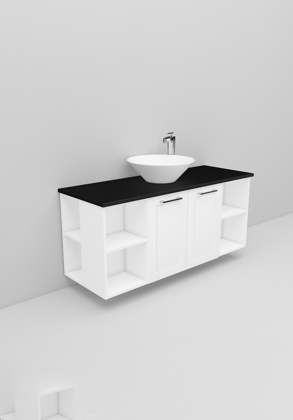 Flexline er badeværelsesmøbler med et tidløst design og mange muligheder. Møblerne fås i varianter med både låger og skuffer med Soft Close-funktion, i bredder på 600 og 1200 mm og med flere forskellige designs på fronterne, som giver karakter til dit møbel. Inkluderer en luksuriøs fritstående vask på en bordplade i Solid Surface-marmor eller sort bordplade. Håndtag, armatur, bundventil og vandlås købes separat.