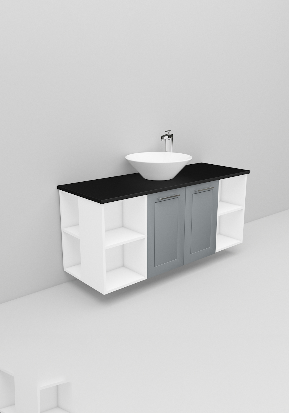 Flexline er badeværelsesmøbler med et tidløst design og mange muligheder. Møblerne fås i varianter med både låger og skuffer med Soft Close-funktion, i bredder på 600 og 1200 mm og med flere forskellige designs på fronterne, som giver karakter til dit møbel. Inkluderer en luksuriøs fritstående vask på en bordplade i Solid Surface-marmor eller sort bordplade. Håndtag, armatur, bundventil og vandlås købes separat.