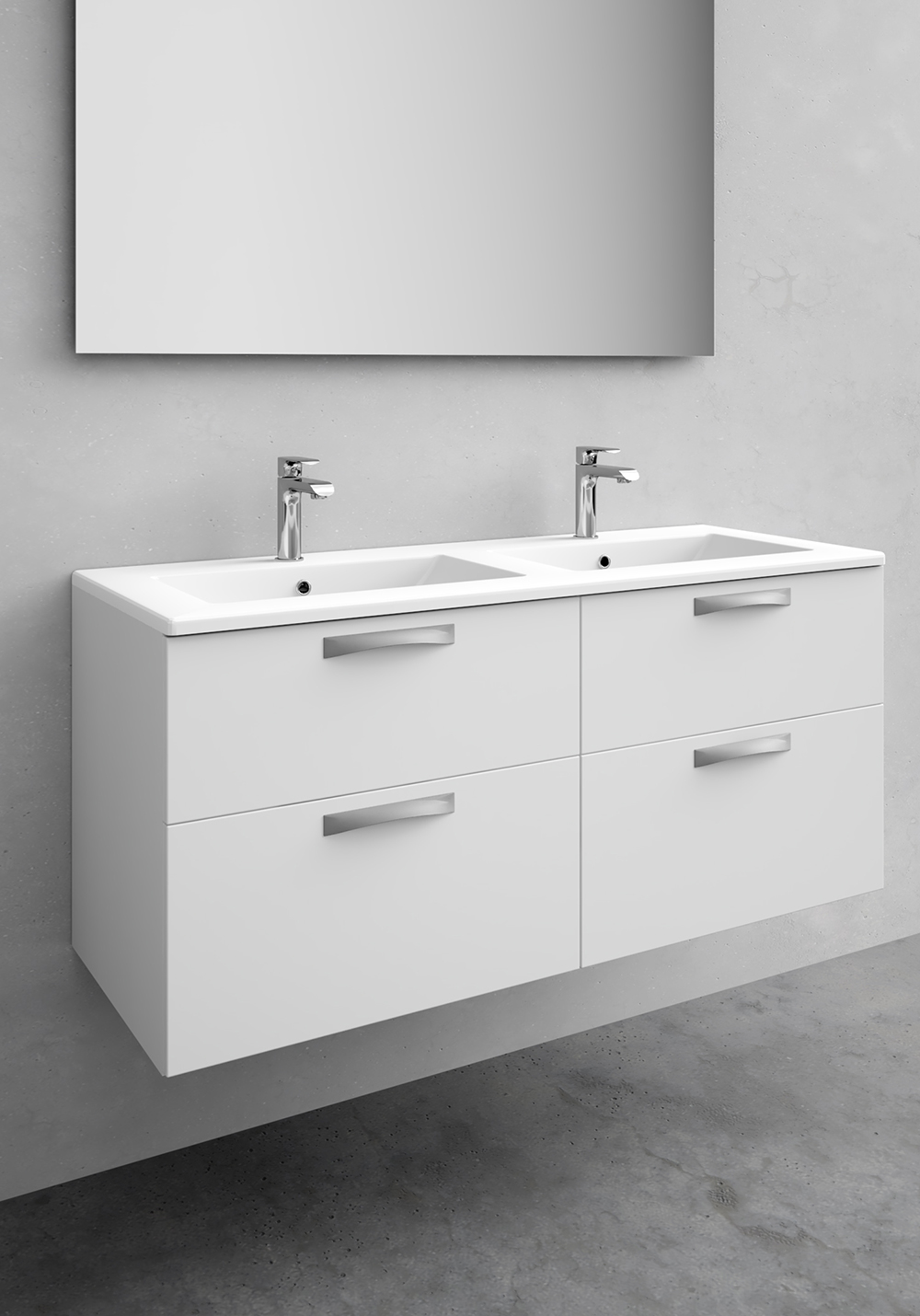 Et badeværelsesmøbel, med et helt igennem ensartet og funktionelt design. City har et stort udvalg af bredder, farver og detaljer, som nemt kan tilpasses til netop dit badeværelse. Skuffer med dæmpet lukkefunktion, som kan trækkes helt ud. Vælg mellem tre nedsænkede vaske i porcelæn eller beton. Hvis du hellere vil give dit møbel en robust bordplade og en fritstående håndvask, er det også muligt. Skuffer med dæmpet lukkefunktion, som kan trækkes helt ud. City skab har fleksible ophængsbeslag, som gør montering og justering nemt. Skuffeindsats og udtagelig skuffemåtte medfølger. Leveres samlet. Tilkøb håndtag. Forboring: CC 64, 128, 160, 256, 320.