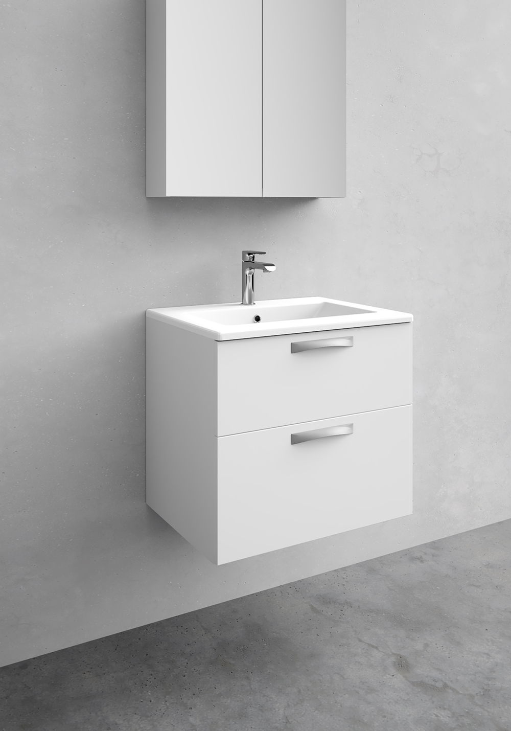 Et badeværelsesmøbel, med et helt igennem ensartet og funktionelt design. City har et stort udvalg af bredder, farver og detaljer, som nemt kan tilpasses til netop dit badeværelse. Skuffer med dæmpet lukkefunktion, som kan trækkes helt ud. Vælg mellem tre nedsænkede vaske i porcelæn eller beton. Hvis du hellere vil give dit møbel en robust bordplade og en fritstående håndvask, er det også muligt. Skuffer med dæmpet lukkefunktion, som kan trækkes helt ud. City skab har fleksible ophængsbeslag, som gør montering og justering nemt. Skuffeindsats og udtagelig skuffemåtte medfølger. Leveres samlet. Tilkøb håndtag. Forboring: CC 64, 128, 160, 256, 320.