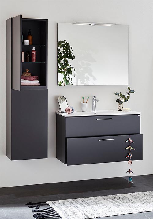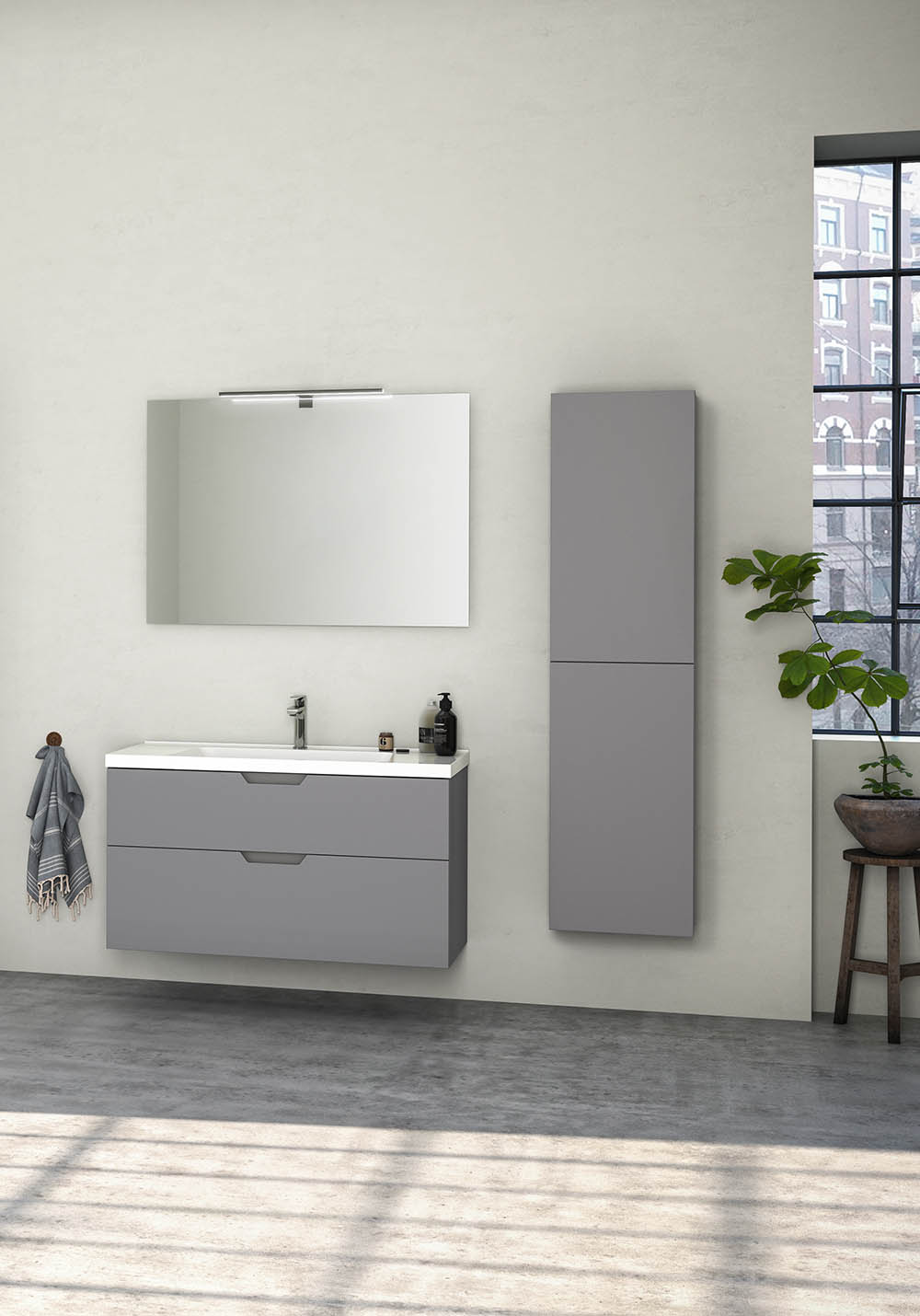 Fladt spejl med skjult ophæng og plads bagved (12 mm fra væggen) til at skjule elinstallation af f.eks. Flex LED-lampe eller Flex LED-belysningsprofil, som tilkøbes.