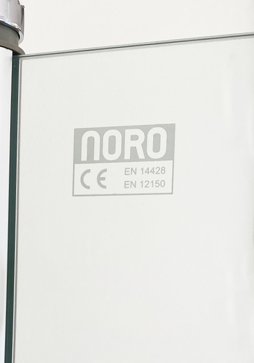 Dørene kan åbnes 180 grader. 5mm klart hærdet sikkerhedsglas. Løftehængsler der løfter 5mm. Kraftig poleret aluminiumsprofil, sølvmat finish. Forberedt til udvendige rør til 35mm fra væggen. Håndtag følger med. Passer med fordel til NORO Grand.