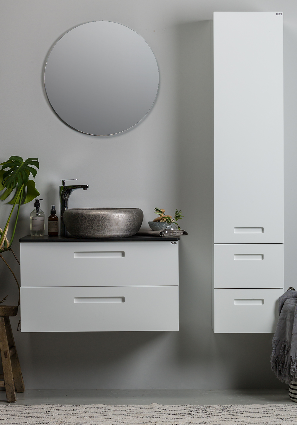 Fjern sæbe- og kalkrester dagligt med en fugtig klud og om nødvendigt et mildt, miljøvenligt rengøringsmiddel. Brug ikke rengøringsmidler og produkter, der indeholder slibemidler, syrer, ammoniak, acetone eller andre kemikalier (såsom skurepulver, hårspray, hårfarve, blegemiddel og neglelakfjerner osv.). Skulle noget af ovenstående ende på produktet, skal det straks fjernes for at undgå skader. Lidt sure midler kan bruges til at fjerne kalkpletter, hvis midlet skylles grundigt af umiddelbart derefter. Efterladelse af produktet på overfladen kan forårsage permanente pletter. Brug ikke ståluld eller slibende svampe. Anbring ikke varme genstande (f.eks. krøllejern) mod overfladen og undgå skarpe genstande, der kan ridse overfladen.