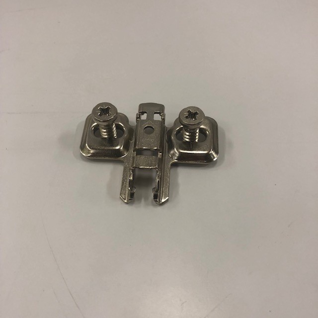 Plade til hængsel for Blum speljskabshængsel. Lav model til hængslerne på de ydre spejldører. Passer til hængsel med artnr 9210240 og 9210264