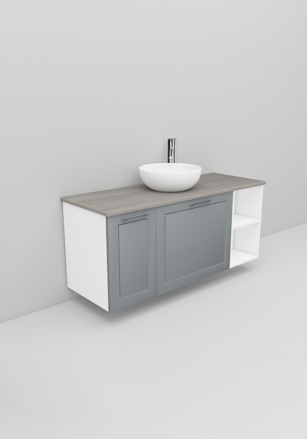 Flexline er badeværelsesmøbler med et tidløst design og mange muligheder. Møblerne fås i varianter med både låger og skuffer med Soft Close-funktion, i bredder på 600, 900 og 1200 mm og med flere forskellige designs på fronterne, som giver karakter til dit møbel. Inkluderer en luksuriøs fritstående vask på en bordplade i Solid Surface-marmor eller sort bordplade. Håndtag, armatur, bundventil og vandlås købes separat.