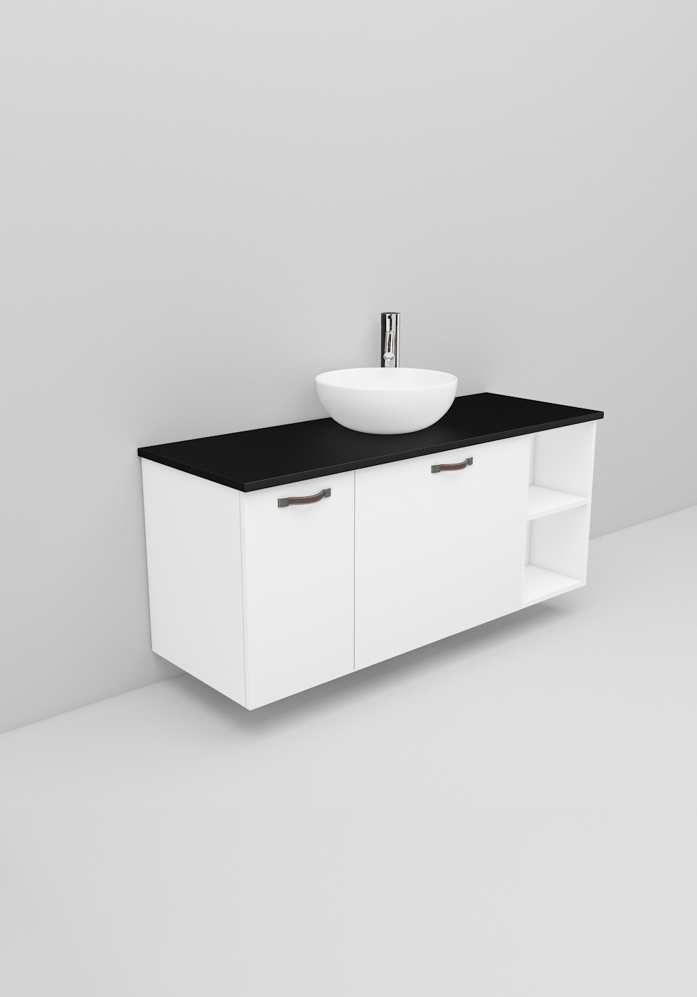 Flexline er badeværelsesmøbler med et tidløst design og mange muligheder. Møblerne fås i varianter med både låger og skuffer med Soft Close-funktion, i bredder på 600, 900 og 1200 mm og med flere forskellige designs på fronterne, som giver karakter til dit møbel. Inkluderer en luksuriøs fritstående vask på en bordplade i Solid Surface-marmor eller sort bordplade. Håndtag, armatur, bundventil og vandlås købes separat.