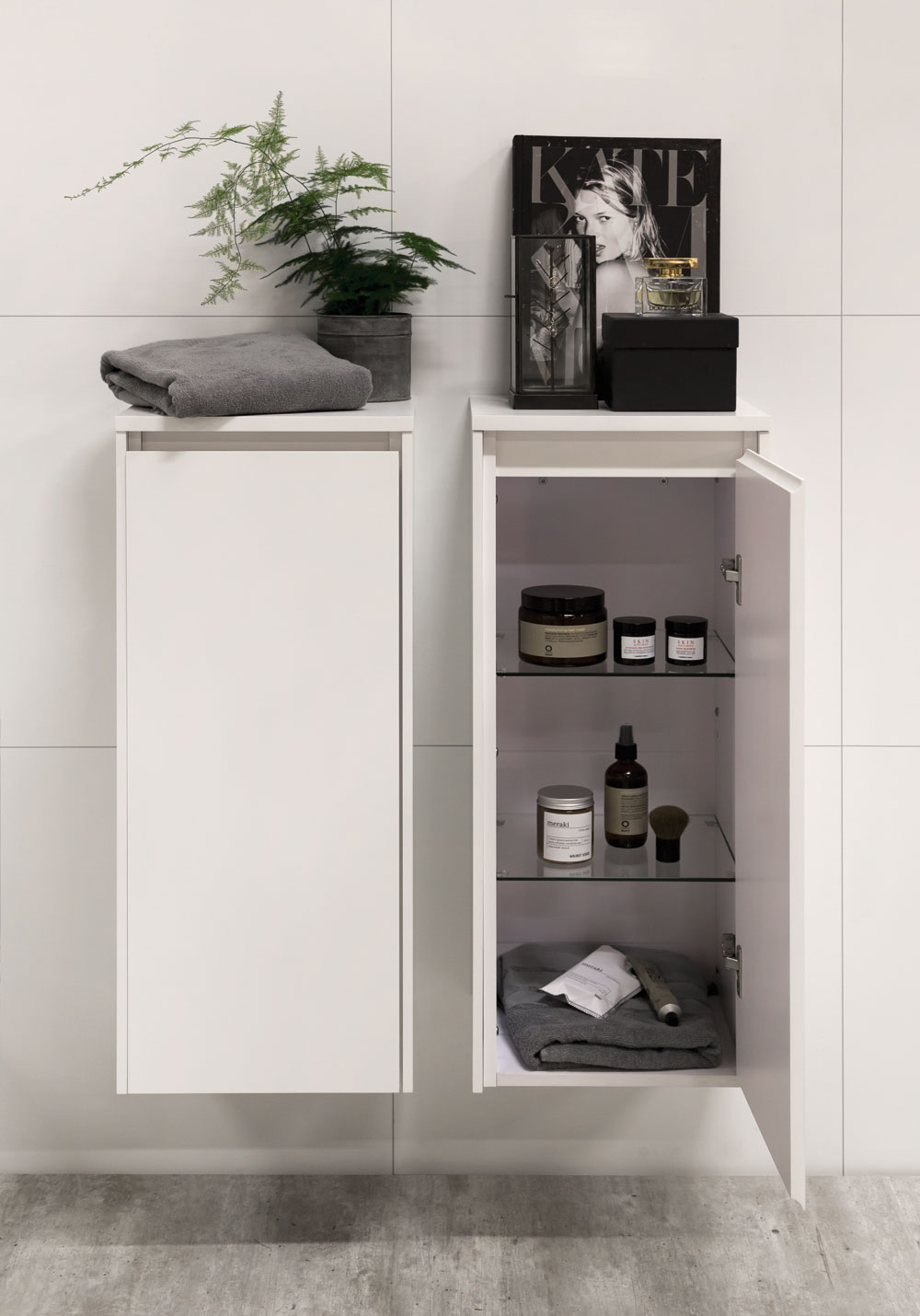 Lifestyle Concept er vores absolut største badeværelsesserie, som tilbyder en alsidig måde at indrette dit badeværelse på – kun pladsen og fantasien sætter grænser. Du vælger selv højde og bredde med forskellige skuffeløsninger. Vandtæt højtrykslamineret bordplade med luksuriøst fritstående porcelænsvask. Lifestyle Concept fås i mat hvid, og basisudgaverne findes i flere bredder. Modulerne leveres færdigsamlede.