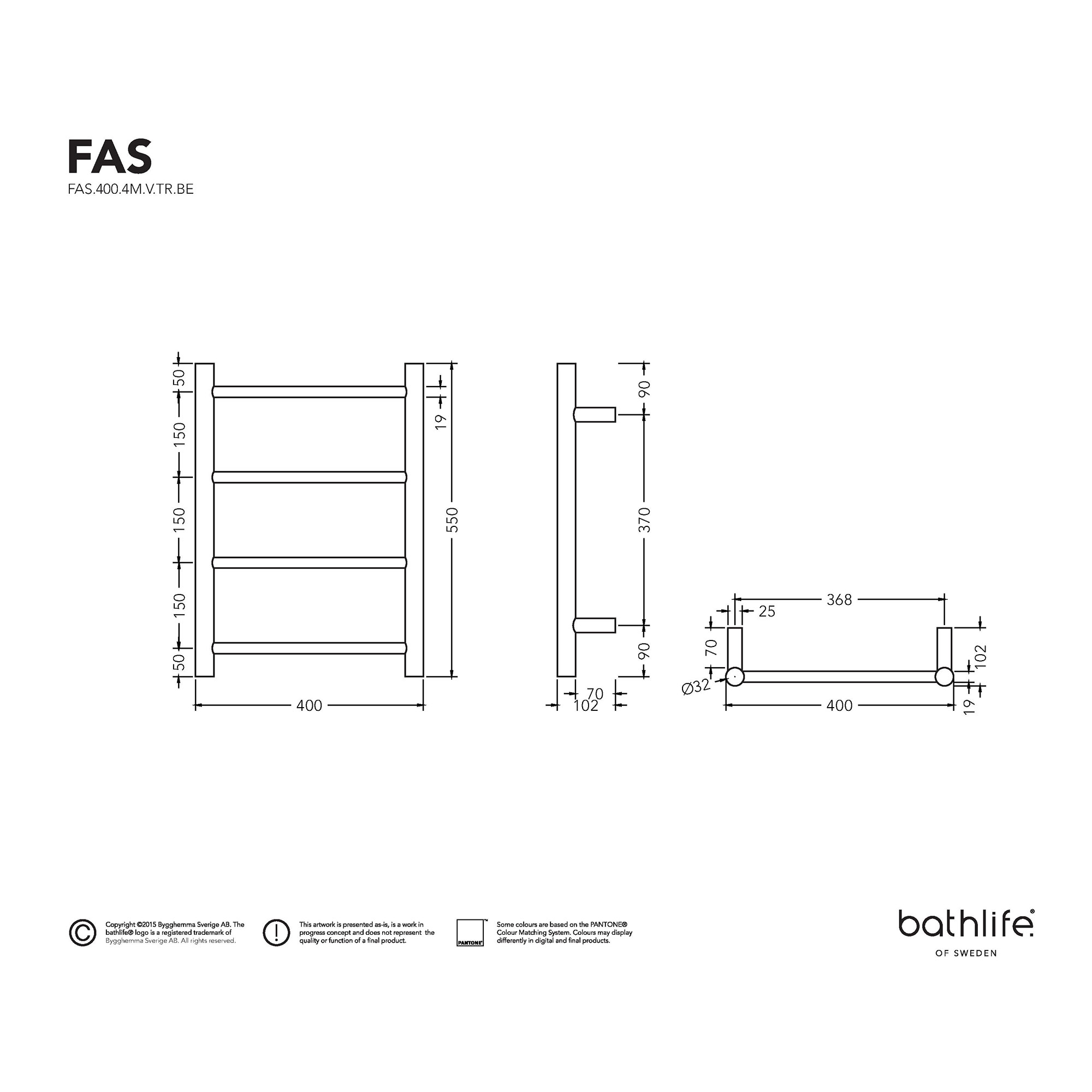 Bathlife Fas 400 Håndklædetørrer Elektrisk I Sort 40 X 55 Cm