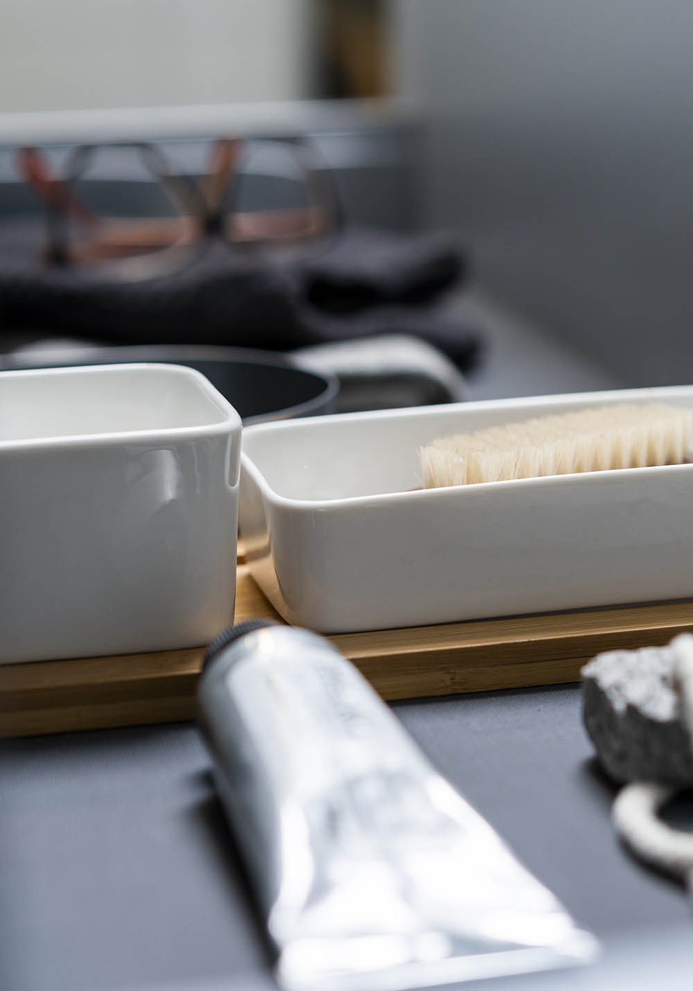 Skuffeindsats i bambus og porcelæn.