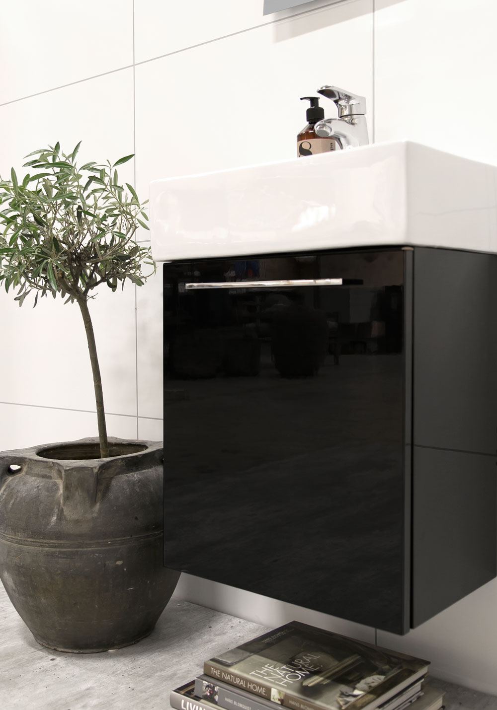 Håndvask i porcelæn, inklusive overløb. Leveres uden bundventil og vandlås.